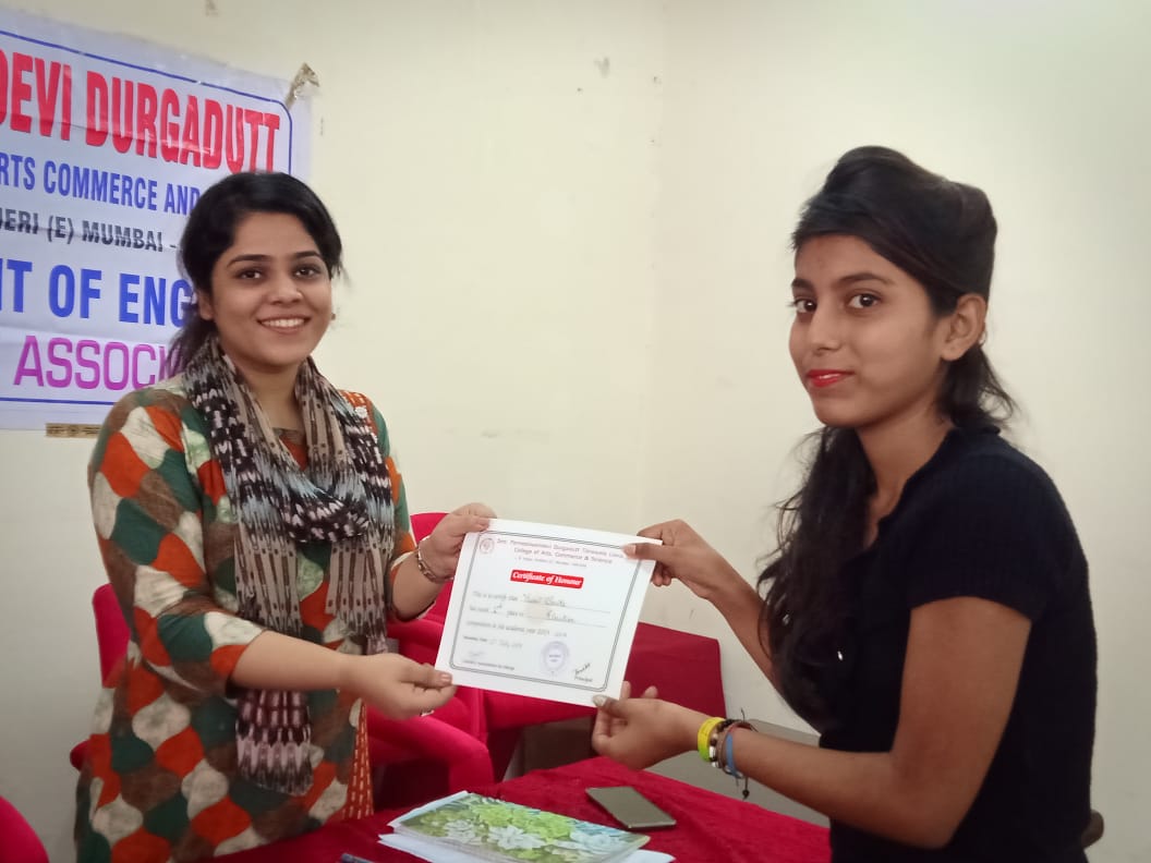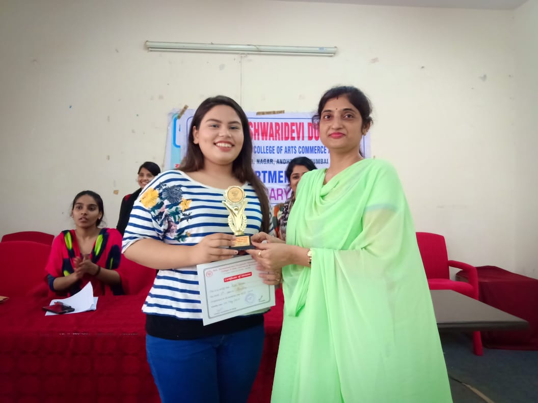 The first prize went to Miss Ruth Nelson of F.Y.B.COM d division, and second prize was awarded to Ezaz Shaikh of F.Y.B.COM –A division. And third prize went to Sharika Tiwari of F.Y.B.com B division.